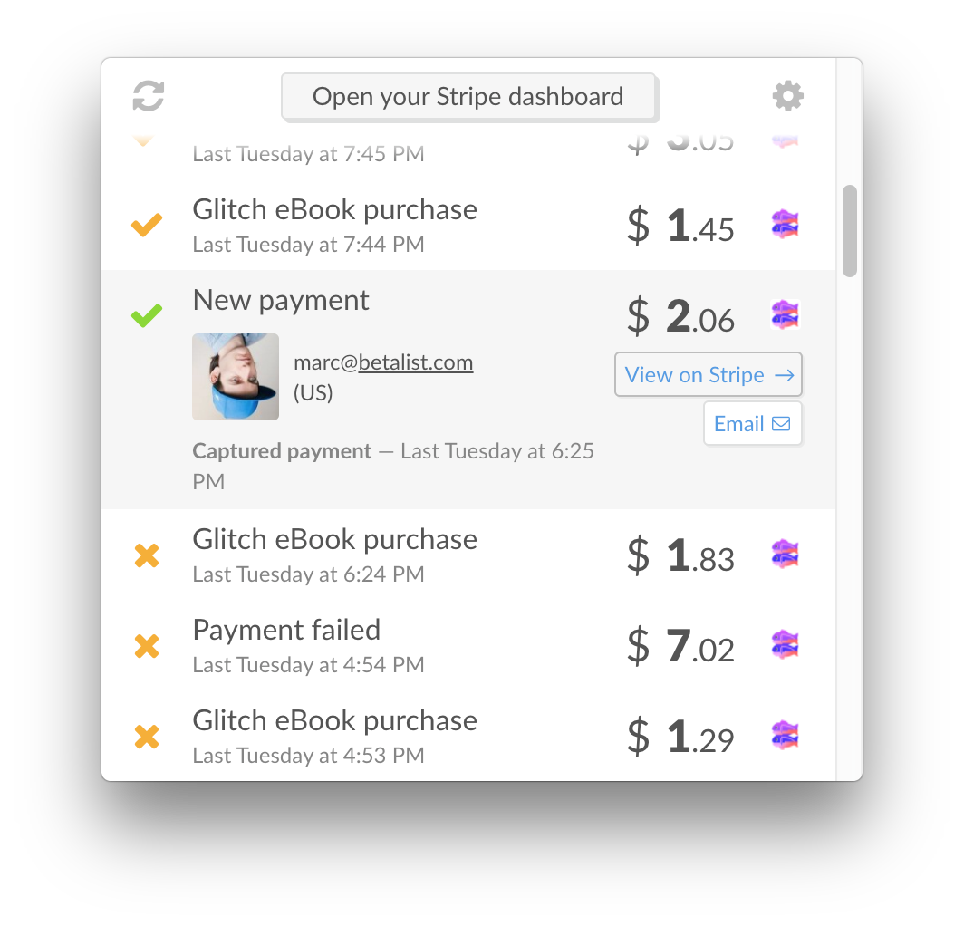 Click an event to expand it and get more details about it. Get to know who’s your customer with her gravatar (or her company’s logo), and email her directly from CashNotify.