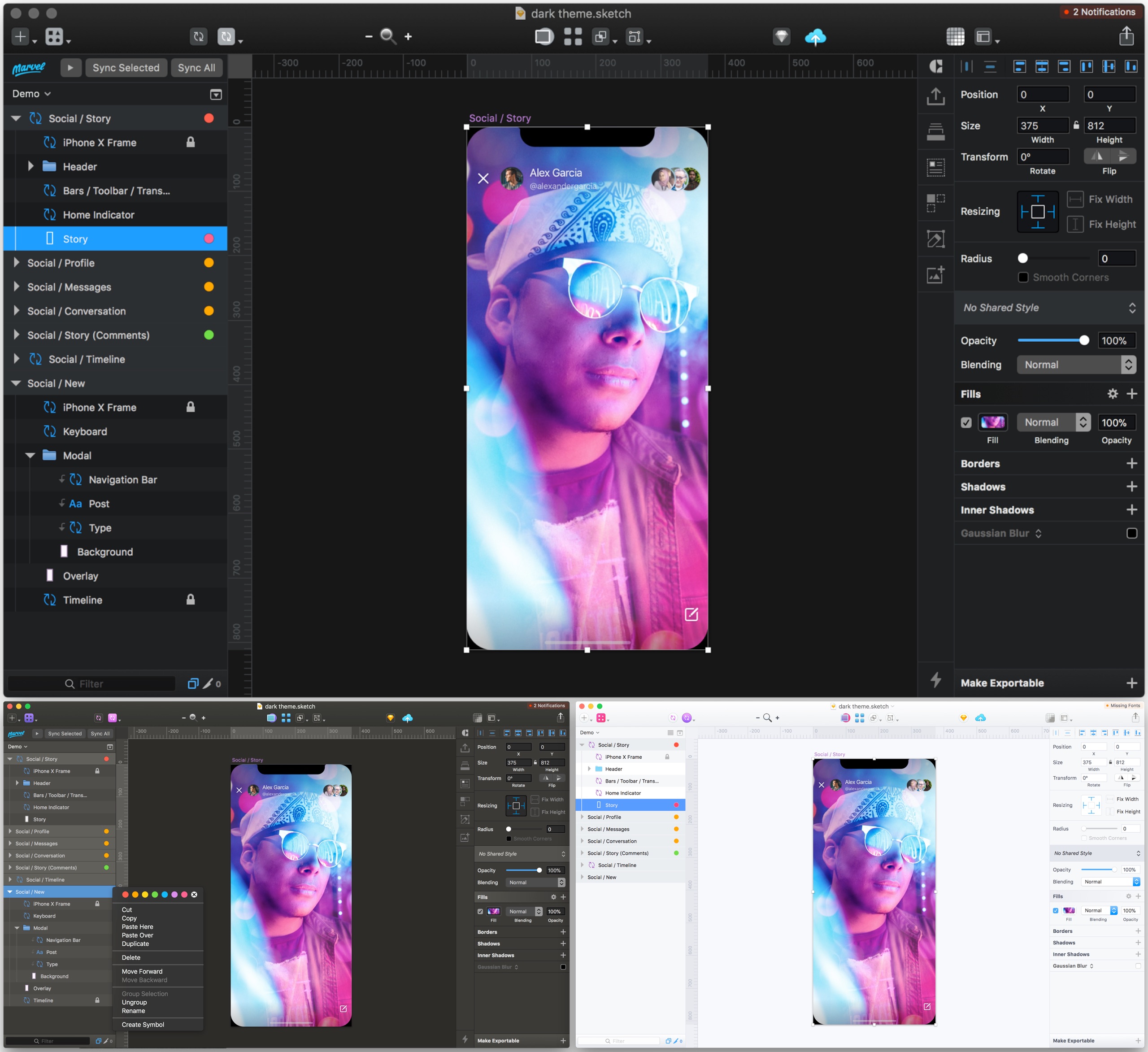 Midnight is a fantastic dark theme plugin for Sketch. It includes 3 themes in black, grey, and ultra-light colors. Our favorite is the darkest one (Night Owl), ideal for late-night design sessions.