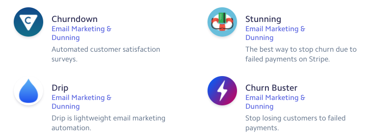 See Stunning, ChurnBuster, Baremetrics, or others in Stripe’s App directory.